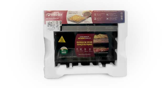 Com expertise de mais de duas décadas no fornecimento de embalagens para as Linhas Brancas e Marrom, a Termotécnica desenvolveu uma solução eficaz para a cliente Mueller. A fabricante de eletrodomésticos projetou e lançou o Air Forno, o primeiro produzido nacionalmente que une as funções de air fryer e forno elétrico em um único equipamento e possui grande capacidade (35 litros).
